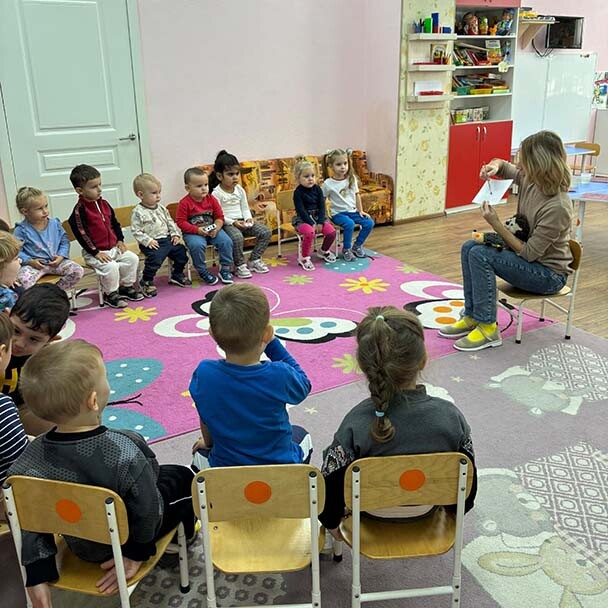 В МБ ДОУ №12 «Березка» города Батайска музыкальный руководитель Кальдина Е.Н. провела с детьми из группы «Сказка» музыкальное занятие. На занятии ребята учились вслушиваться в пение педагога и чувствовать его настроение, играть на погремушках и ложках. Развивали эмоциональную отзывчивость на музыку; развивали звуковысотный слух; желание заниматься. Учились начинать петь все вместе, выполняя движения под пение воспитателя.