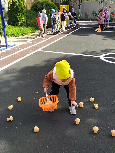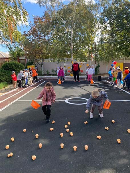 В МБ ДОУ №12 «Березка» в группах «Лучики» и «Знайки» инструктор по физической культуре Кузьменко Н.И. провела осенние старты. Ребята с азартом соревновались, разбирали овощи и фрукты, вывозили на машинах урожай с огорода. Ходили в осенний лес за грибами. Прыгали в мешках и перетягивали канат. Мероприятие завершилось флешмобом.