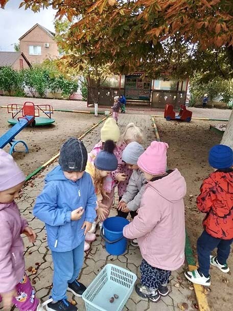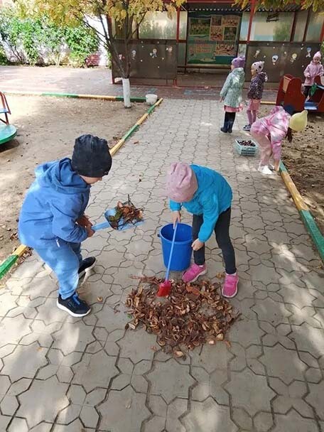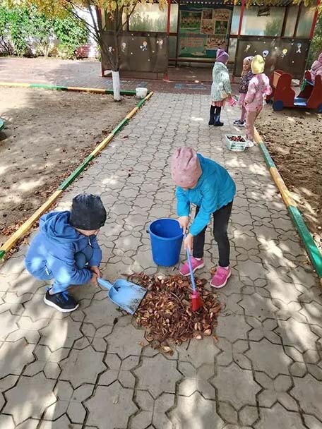 В МБ ДОУ №12 «Березка» города Батайска ребята из группы «Знайки» вместе с воспитателем Бессарабовой Л.В. во время прогулки наблюдали за осенними изменениями в природе. А еще наши ребята решили потрудиться на своем участке. Дружно убрали сухие листья и каштаны.
