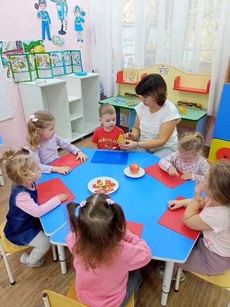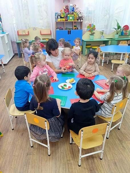 В МБ ДОУ №12 «Березка» воспитатель Шмыглина Н.А. провела с детьми из группы «Сказка» занятие по лепке «яблоко и груша».