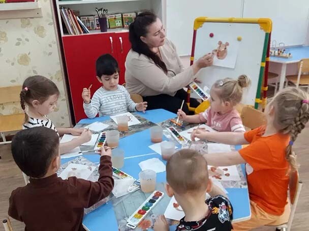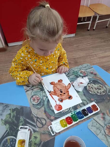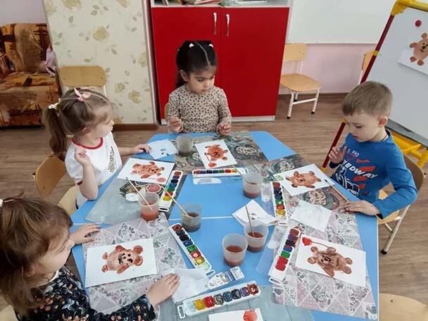 В МБ ДОУ №12 «Березка» города Батайска воспитатель Щербина В.В. провела с детьми из группы «Сказка» занятие по рисованию акварелью. Тема: «Медвежонок спешит в гости».