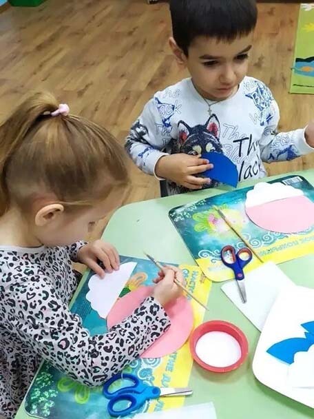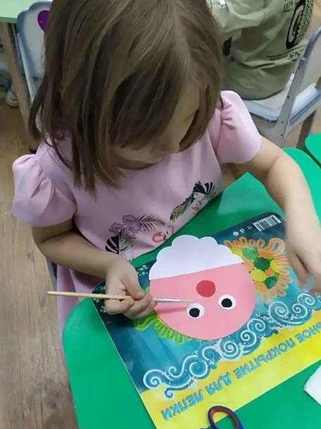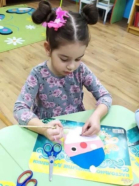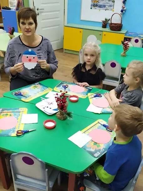 В МБ ДОУ №12 «Березка» города Батайска ребята из группы «Знайки» под руководством воспитателя Кузьменко Н.И. сделали красочные аппликации «Наш любимый Дед Мороз». На занятии ребята закрепляли знания о круглой форме. Продолжали учиться работать ножницами. Учились правильно располагать элементы по кругу. Старались наклеивать аккуратно, ровно.