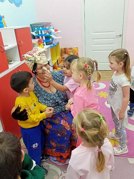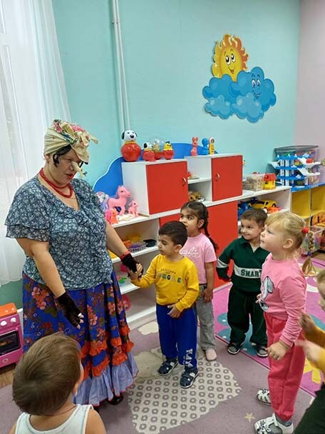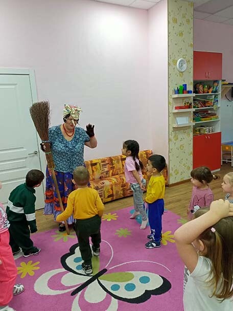 В МБ ДОУ №12 «Березка» города Батайска музыкальный руководитель Кальдина Е.Н. провела с ребятами из группы «Сказка» интересное занятие «Знакомство со сказочным персонажем, Бабой Ягой». Ребята узнали, что Баба Яга бывает не только злая, но и добрая, веселая, которая с удовольствием может поиграть с детьми, покатать на метле.