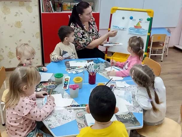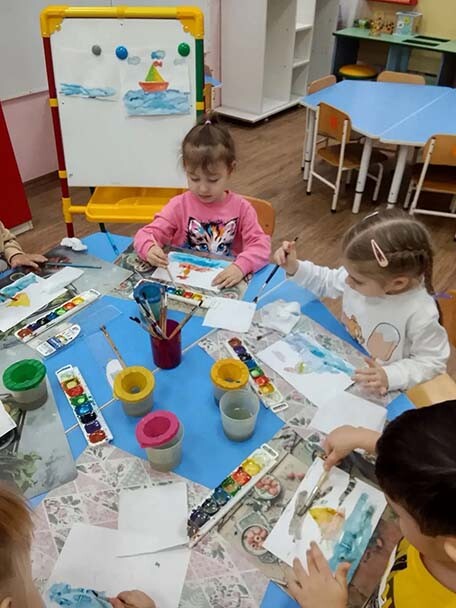 В МБ ДОУ №12 «Березка» города Батайска воспитатель Щербина В.В. провела с детьми из группы «Сказка» занятие по рисованию акварелью. «Кораблик уплывает». «Нарисуем для кораблика синее море». На занятии воспитатель старалась помочь детям правильно составить композицию на морскую тему. Ребята закрепляли умение аккуратно закрашивать изображение рисунка. Развивали творческое воображение в процессе работы.