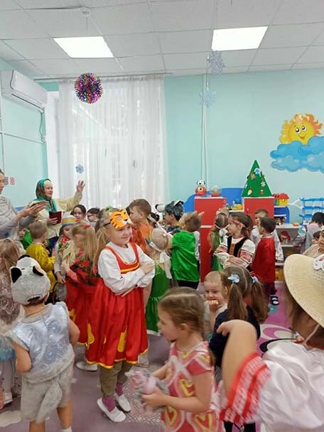В МБ ДОУ №12 «Березка» 15 января 2026 года для воспитанников нашего детского сада прошло развлечение «Святки – колядки». В гости к хозяюшке Дуняше пришла Баба Яга. Ребята научили ее колядовать, песни петь да плясать. А Баба Яга с ребятами играла, катала их на метле, да еще и всем погадала с волшебным мешочком.