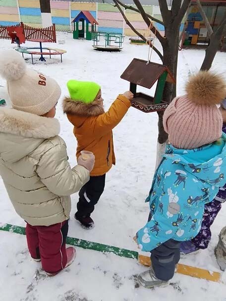В МБ ДОУ №12 «Березка» города Батайска воспитатель Бессарабова Л.В. провела с детьми из группы «Знайки» занятие по рисованию «Забота о пернатых».