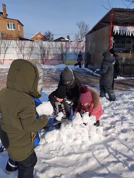 В МБ ДОУ №12 «Березка» ребята из группы «Капитошка» вместе с воспитателем Белостоцкой О.Н. во время прогулки построили крепость из снега. Все дети получили огромное удовольствие от игры со снегом.